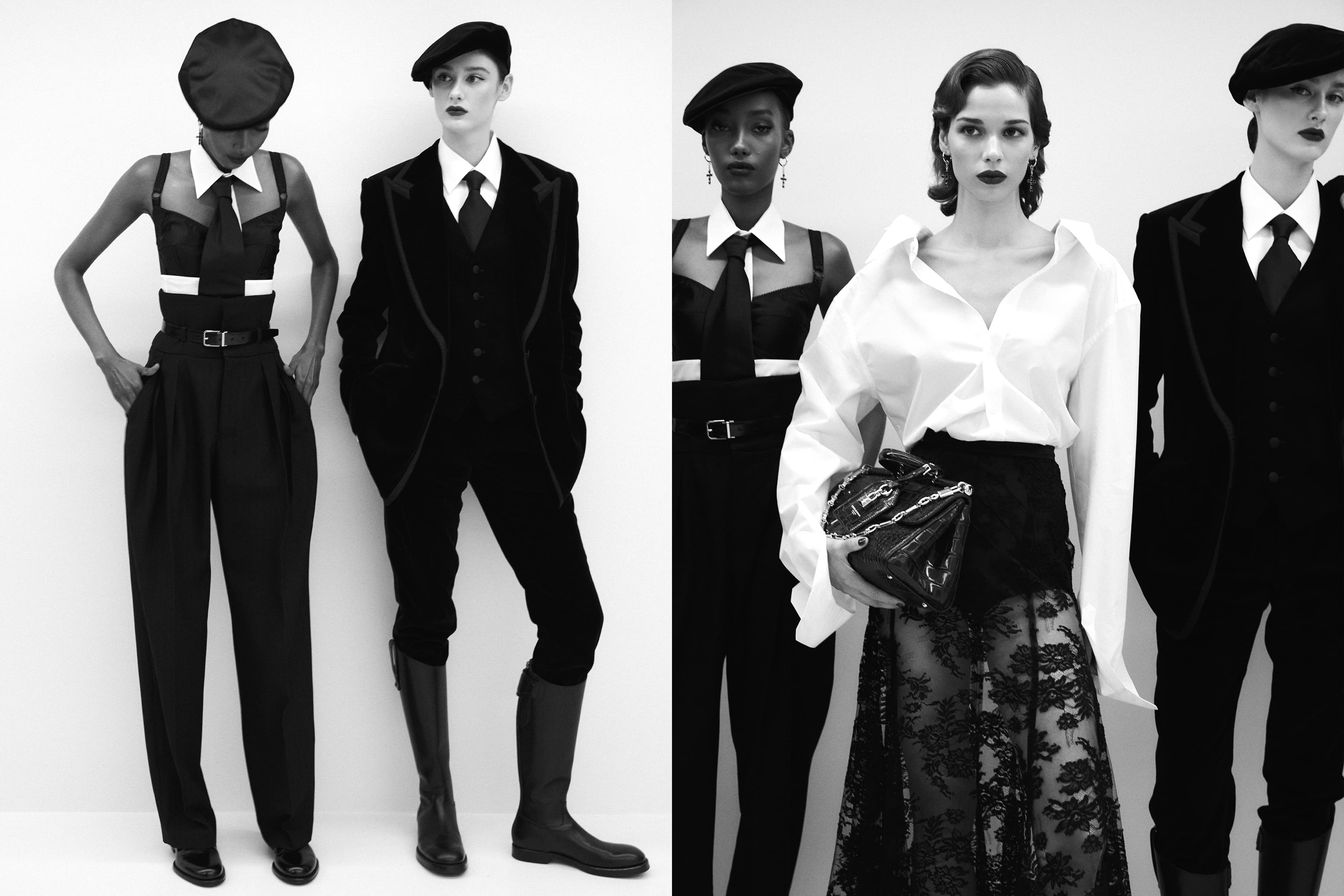 阳刚风范与柔婉灵韵交融相生,精裁工艺蕴蓄创意美学。蕾丝单品在宽大的西装外套下悄然掩映,而领带和挺括、干练的白衬衫则勾绘出坚毅却不失感性的衣着装束。Dolce Jacket的经典版型凸显臀部曲线,而灵感源自男装的单品则以崭新比例、清晰腰线和创新探索焕启新章,服装考究的内部结构尽致彰显。