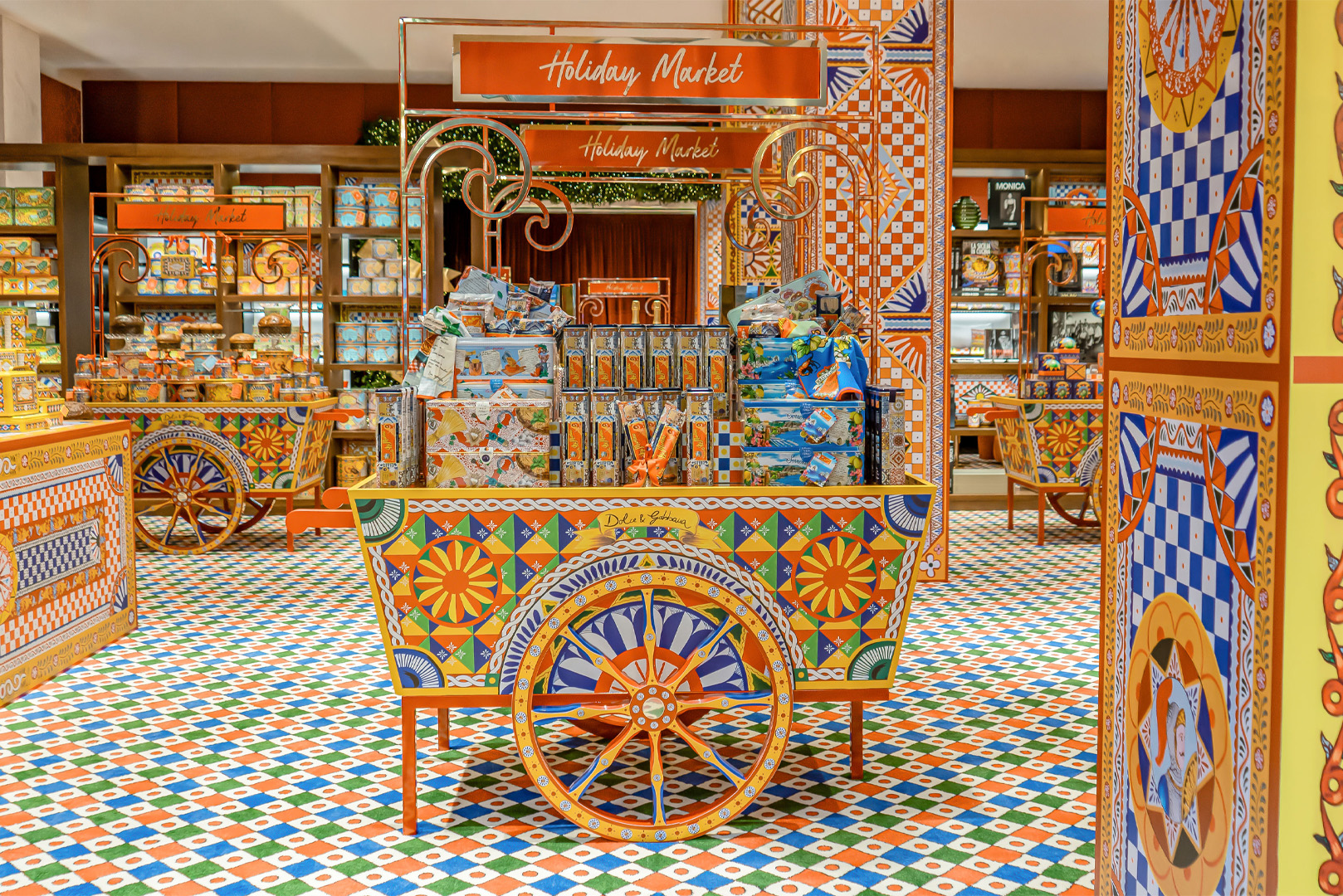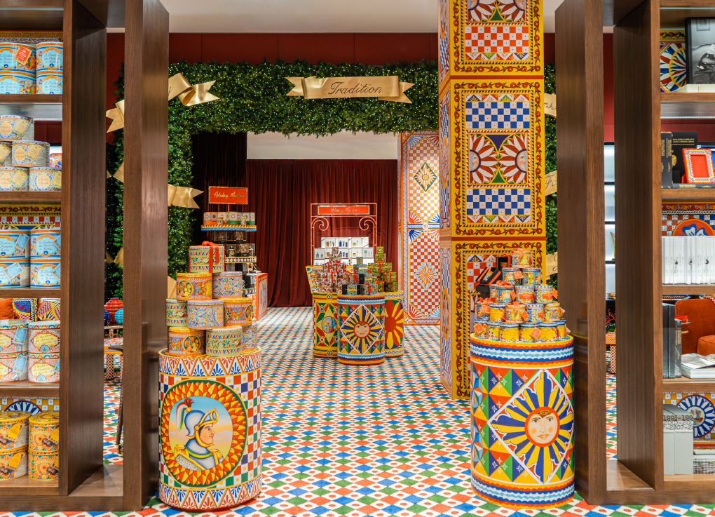Carretto Siciliano 西西里马拉车的梦幻之境为Dolce&Gabbana 创意世界中最具标志性的主题之一,其民俗风韵与独特魅力为各空间注入鲜活生命力,唤醒深植于意大利历史积淀的深厚传统与文化记忆。与此同时,精心装饰的圣诞树、精益求精的细节,开启一场温馨、喜悦与创造力的美学体验。